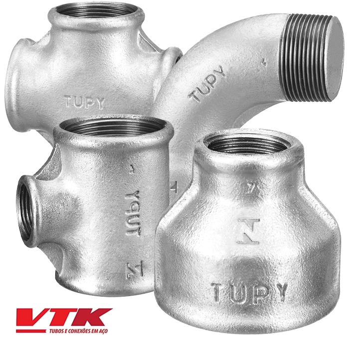 - Variedade em conexões galvanizadas, roscadas, de ferro maleável e outras opções.